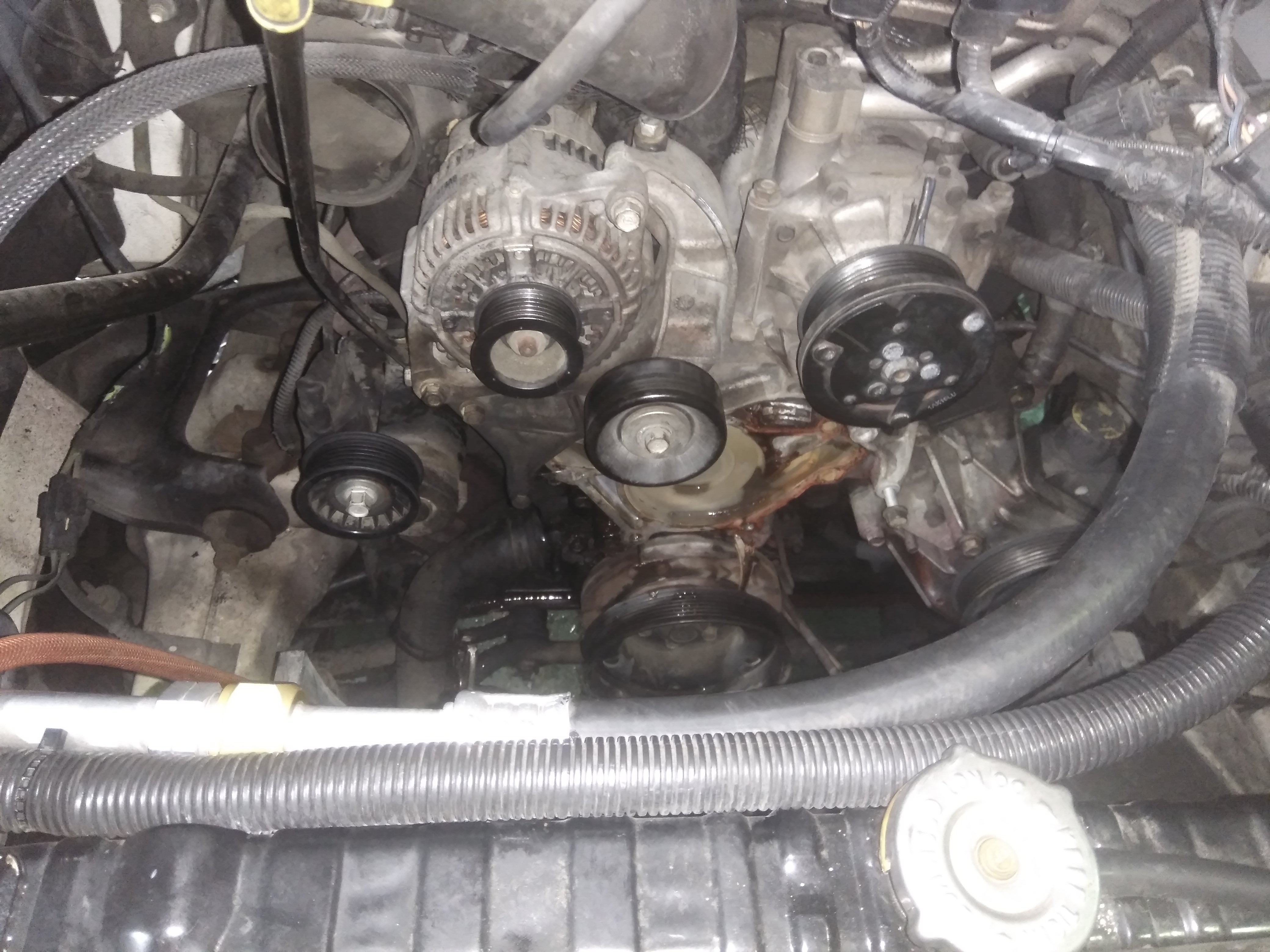 原因はウォーターポンプよりのクーラント漏れでした!早速交換^^